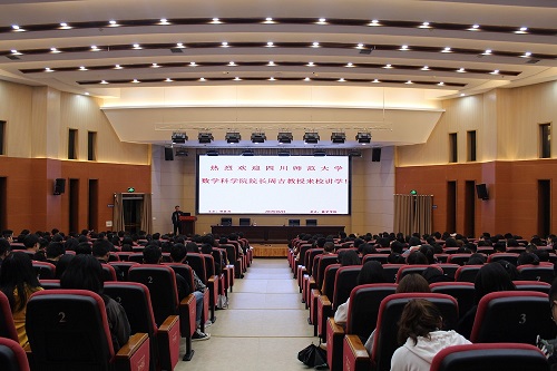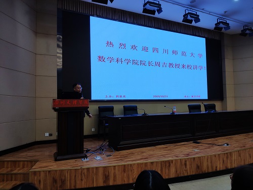 2019年10月21日晚上19:00,四川师范大学数学科学公司经理周吉教授应邀在公司莲湖校区学术报告A厅作“几何体的测量”学术讲座。太阳成集团tyc122cc全体教师和2017、2018、2019级各专业同学听取了本次报告,报告由太阳成集团tyc122cc经理罗肖强主持。