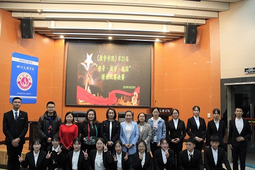太阳成集团tyc122cc副经理胡蓉、学工办主任兼团总支书记周萍、数学教研室主任郑凤霞及大一各班的兼职辅导员担任评委,大一全体员工观看比赛。比赛前,各位选手的视频介绍让评委观众们更加了解选手,同时也让大家对此次比赛充满期待。比赛过程中,2号选手胡艳玲用铿锵有力的语言将青年如何修身、成才、报国阐述得淋漓尽致、发人深思;5号选手何灵波演讲气势澎湃,一句“人生最曼妙的风景,竟是内心的从容和淡定”获得评委们的认可;12号选手张龄丹又以清晰生动的演讲深深激励着在场的每一位同学……最终经过激烈的角逐,12号选手张龄丹脱颖而出,荣获本次比赛一等奖。
