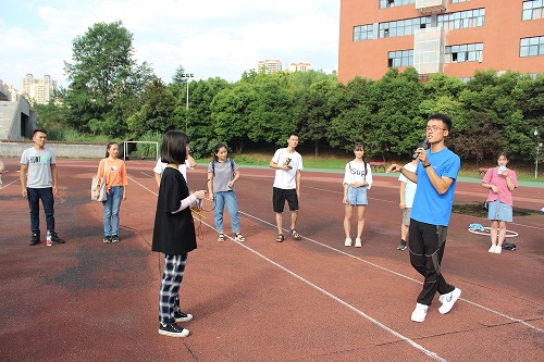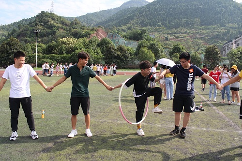 13日早上9:00,团总支员工会带领2019级员工在田径运动场上进行了团辅活动。本次活动主要是为了让同学们尽快地适应新环境,顺利完成从中学到大学的角色转变。在学姐学长的带领下,同学们参与了“记名字”、“传递呼啦圈”、“双龙戏珠”等各种有趣的游戏。