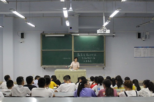 9月15日,入学教育继续在学术报告B厅开展。公司党总支副书记苟格、副经理胡蓉、辅导员王佳佳与王茜对同学们进行了心理安全教育、法制安全与规章制度教育。在此期间,苟书记还为同学们播放了《这就是中国》专题片段,让同学们领略了祖国的崛起,同时也让大家知晓了自己肩上的重担。