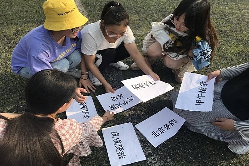 金秋九月,丹桂飘香,一首激情澎湃的《我和我的祖国》拉开了本次活动的序幕。紧接着便是激动人心、韵味十足的游戏环节了。此次活动设有七个游戏节目,既有考验大家对祖国历史及巨大成就的熟知程度的“重走七十年”与“中华文化库”,又有锻炼大家身体素质的“争锋岁月”,而“与‘十’俱进”又以踢毽子的形式仿佛让同学们回到了小时候……同学们六人一组,兴趣盎然,争分夺秒,最终根据比赛成绩获得相应的奖励。活动结束后,大家一起合影留念。 此外还有“祖国母亲,我想对您说”的征文活动,同学们可通过诗歌或散文的方式把自己想对祖国说的话写出来给大家分享。