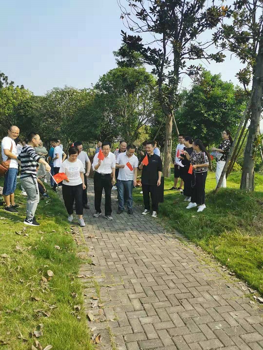 8点30分,老师们分别从文理公司新校区、西外新区、南城区、老城区等各自住所向活动地——鹿鼎寨进发。一路上,大家从不同地方、站在不同角度感受到达州市近年来的巨大变化,增强了大家创建文明城市、卫生城市、森林城市、公园城市的信心,激发了自觉参与“四城同创”的热情,也更加明确了作为普通市民的我们在“四城同创”活动中的应尽责任。在鹿鼎寨公园,先到达的老师们自觉地清扫落叶,清理杂草,事虽不大,活虽不重,但这表明了我们对“四城同创”的态度。10点,活动正式开始。在党总支书记唐玉萍、经理兼分工会主席罗肖强主持下,老师们合唱“我和我的祖国”,庆祝祖国母亲70岁生日,洪亮歌声响彻在鹿鼎寨上空。在鹿鼎寨公园,老师们开展了徙步、知识竟猜比赛和游园活动,按照活动方案评出了各项比赛与活动的一、二、三等奖。中午12点,本次活动圆满结束。