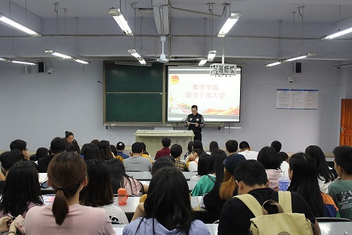 紧接着,劳生部李忠慢同学对寝室内务、安全等“第十七届寝室文化节”目前阶段问题进行了总结,并希望同学们能引起重视;随后学习部王双同学详细讲解了数学文化节的相关内容,并鼓励同学们积极参加。