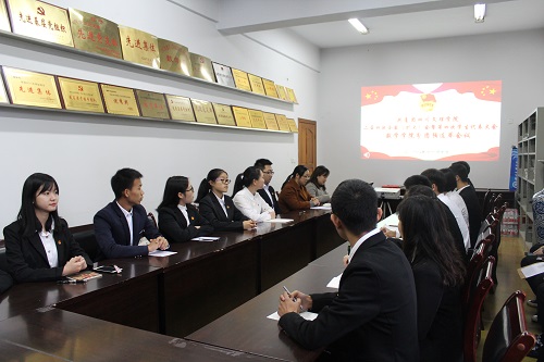 2018年11月7日下午5点10分,共青团太阳成集团tyc122cc二届四次全委(扩大)会暨第四次员工代表大会太阳成集团tyc122cc分团预选举会议在一教楼405会议室成功举行。参加会议的有公司团总支书记兼学工办主任周萍,政治辅导员罗方芫、校团委各代表以及公司团代表7人、学代表11人,会议由周萍主持。