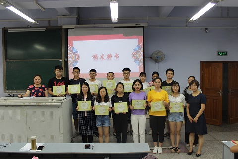 会议首先由罗老师宣读新一届团总支员工会干部任命通知书,新一届员工干部代表刘建宏带领新干部们宣誓,大家立誓认真工作,服务同学。然后,老一届干部江山、叶堂燕、杨菊、周艳先后进行了经验交流,他们用自己的成长经历告诉大家担任员工干部对个人成长的意义,以及做好员工干部的方式方法。紧接着,参会老师们为老一届员工干部颁发了聘书,最后,唐玉萍书记进行总结发言,她对新一届干部表示祝贺,同时感谢上届干部做出的骄人成绩,指出员工干部要明确自己的位置,知道做什么,怎么做,她还强调员工干部要有担当,不可相互推卸责任,同时鼓励大家要争做一名优秀的员工干部。