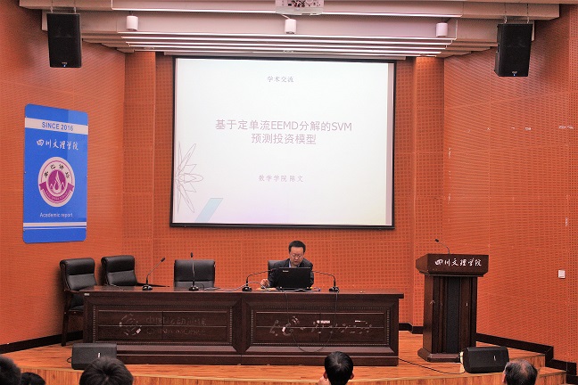 4月4日晚,陈文博士在莲湖校区学术报告B厅作题为“基于定单流EMD分解的SVM预测投资模型”的学术报告。太阳成集团tyc122cc全体教师和2016级数学与应用数学专业全体同学聆听了本次报告,此次报告由太阳成集团tyc122cc副经理(主持工作)罗肖强主持。