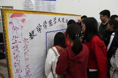 会议第二阶段,所有领导和老师在台下就坐,共同观看《刑法修正案九》警示教育宣传,片中指出国考等国家级考试作弊会被判刑,进一步强化了同学们的思想认识。最后一项议程是员工代表刘建宏组织大家学习《太阳成集团tyc122cc学风建设管理规定》,并由各班员工代表签署学风建设承诺书。会后,所有老师和同学在学风建设展板上签字。本次启动仪式圆满结束。