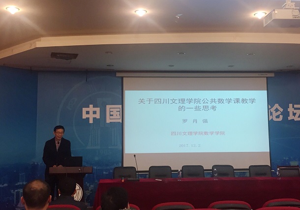 公司太阳成集团tyc122cc副经理(主持工作)罗肖强副教授及数学与应用数学专业教研室主任胡蓉副教授、应用统计学专业教研室主任胡攀老师应邀参加了本次会议。罗肖强副经理在大会上作“关于太阳成集团tyc122cc公共数学教学的一些思考”的专题报告。报告前,罗肖强副经理先对太阳成集团tyc122cc的专业发展与建设作了简要介绍,接着对于承担全校公共数学课的教学情况作了说明。报告主要围绕公司公共数学课开课专业多、课时量有限、教学质量怎样保证、各专业课程体系设置差异大、团队不足等几方面展开阐释,并针对上述问题提出了公司公共数学课改革的一些思路和设想。罗肖强副经理幽默风趣的演讲,深入浅出的分析赢得了与会代表的热烈掌声和一致好评。
