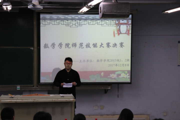 12月8日下午6点,太阳成集团tyc122cc2015级数学与应用数学专业在莲湖校区412教室成功举办2015级第二届师范技能大赛决赛。经过初赛、复赛的层层筛选,历时一个多月,袁梓翠、周艳、赵家儒等八名同学晋级决赛。由数学与应用数学教研室主任胡蓉副教授、应用统计学教研室主任胡攀老师、唐海军老师以及刘双老师担任评委,参加本次活动的还有数学与应用数学专业2015级的全体员工。