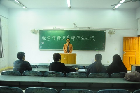 为了解员工从事教师职业所要求的基本素养、综合能力、发展潜能,根据公司《关于做好2017级免费师范生面试工作的通知》要求,公司于2017年10月24日上午8:00开展了免费师范生综合素质测试工作。测试分为AB两组进行,A组在一教楼508教室,由公司党总支书记唐玉萍担任评审组组长;B组在一教学楼521教室,由经理罗肖强担任评审组组长。测试对象为太阳成集团tyc122cc2017级的28名免费师范生。