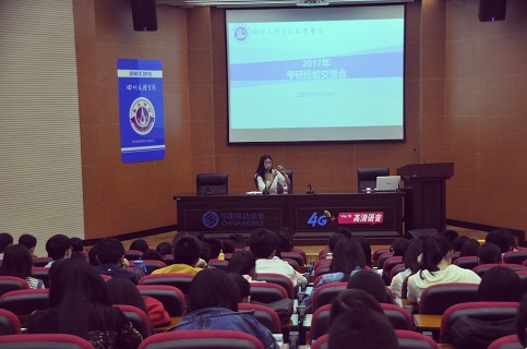 为了弘扬数学学子优秀的考研传统,传递有效的考研经验,做好考研的服务和指导工作,公司于2017年5月10日下午4:30在莲湖校区学术报告大厅B厅,举行了2017届考研员工经验交流会。数学教研室主任胡容老师、数学教研室副主任郑宗剑老师、毕业班班主任唐海军老师以及政治辅导员罗方芫老师出席了本次交流会,公司14级、15级、16级全部员工参与了会议。