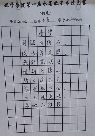 公司于2017年05月24日中午12:20,在莲湖校区一教408教室举行以“发挥特长,展现自我,提高人文素养,建设和谐校园”为主题的十一届“水墨之星”书画大赛决赛。比赛分为:毛笔组、钢笔组、粉笔组和书画组。