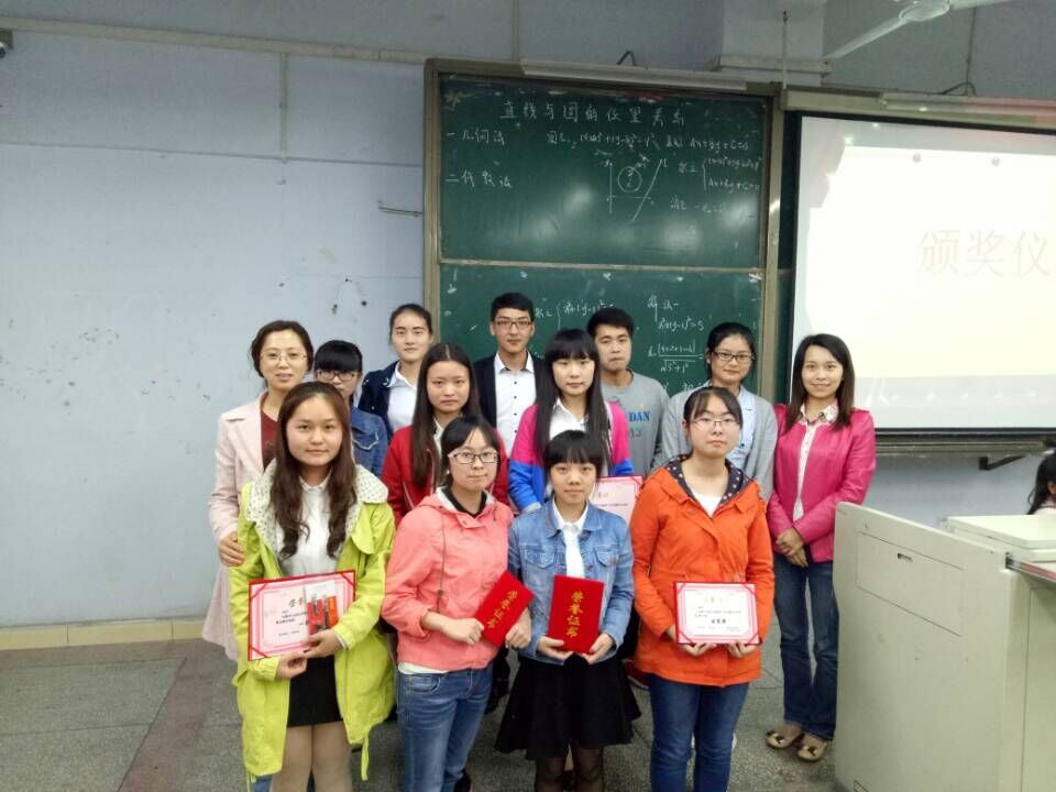 选手们身着正装、举止文雅、从容自信,无不体现出为人师表的乐观向上认真的精神。在教学过程中结合ppt图像并通过与同学间的互动交流,向我们深入地讲授了相关知识点。其中选手郝丽姝同学和谢春燕同学讲的更为生动、深刻,赢得了同学们的热烈掌声,分别获得了数应2014级、2015级第二届师范技能大赛一等奖。最后唐海军老师和李红梅老师就选手们表现进行点评,包括表达、教态、授课内容设计、重难点把握、教学方法、多媒体使用、板块设计等并提出了建设性的意见和建议。评委老师为参赛选手颁发奖状并合影留念。