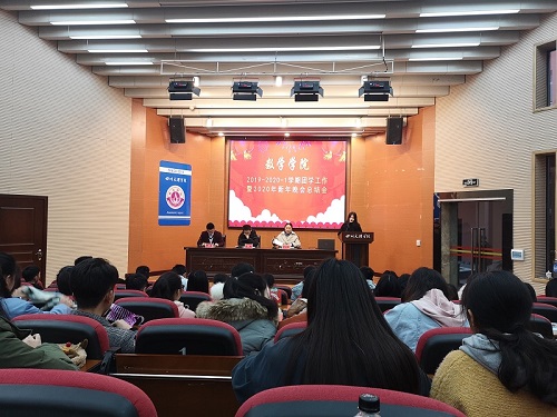 2019年12月24日17:10,公司在莲湖校区学术报告B厅举行太阳成集团tyc122cc2019-2020-1学期团学工作暨2020年新年晚会总结会。参加此次大会的有公司党总支副书记苟格、学工办主任兼团总支书记罗方芫、兼职辅导员韩信、太阳成集团tyc122cc团总支员工会全体成员以及2017级至2019级各班班长和团支书。本次会议由公司员工会主席黄钰淇主持。