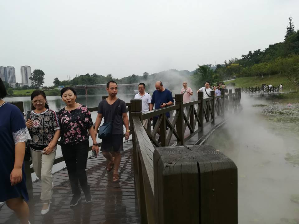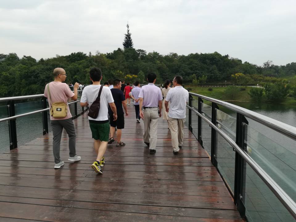 14点30分,老师们从文理公司新校区出发,打着横幅,有说有笑地向游湖起点——莲花湖湿地公园大门口出发。难得天公作美,骄阳披上了一层青色的面纱,几滴甘露替代了莲花湖这个季节的潮湿与闷热。公园大门口,大家愉快地合影,让镜头为我们留住了这美好的一刻。过飞龙桥、渡凌波微步、观大桥映月......一路上美景无限,一路上都是湖面上吹来的凉爽的风。当大家游兴正浓时,活动组织者提醒老师们,16点30分还要参加校工会组织的接力赛,带着不舍的心情,徙步游湖活动于16点20分圆满结束。