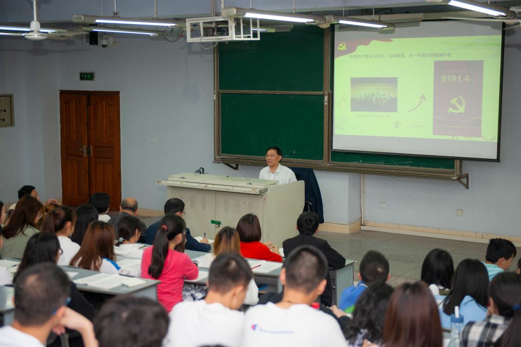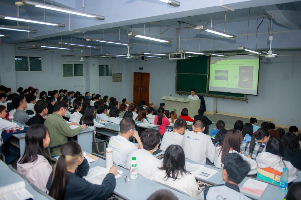 他说,“我们党为了民族的伟大复兴,在实践中不断摸索前行,正是依靠这样的优秀特质,成为始终走在时代前列、人民衷心拥护、勇于自我革命、经得起各种风浪考验、朝气蓬勃的马克思主义执政党。他勉励同学们要坚定听党话跟党走,珍惜大学时光,努力学习科学知识,成长为具有“三心四能五复合”的高素质应用型人才,不负时代,不负人民。