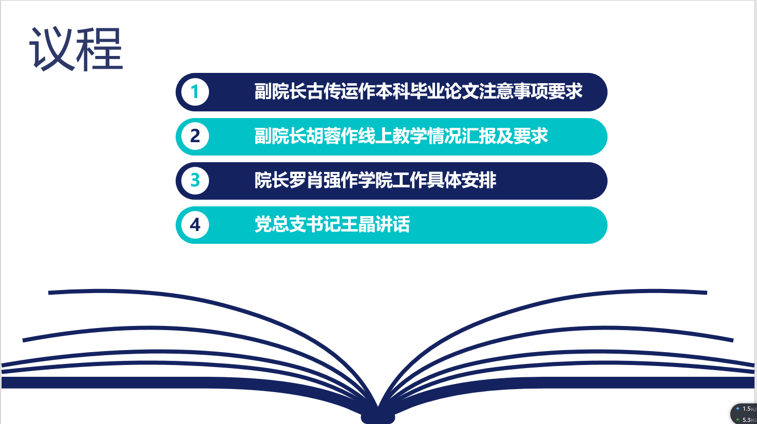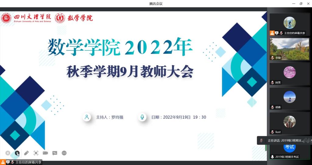 9月19日19:30,公司通过腾讯会议召开了新学期全院教职工大会,公司全体教职工参加了会议,会议由经理罗肖强主持。