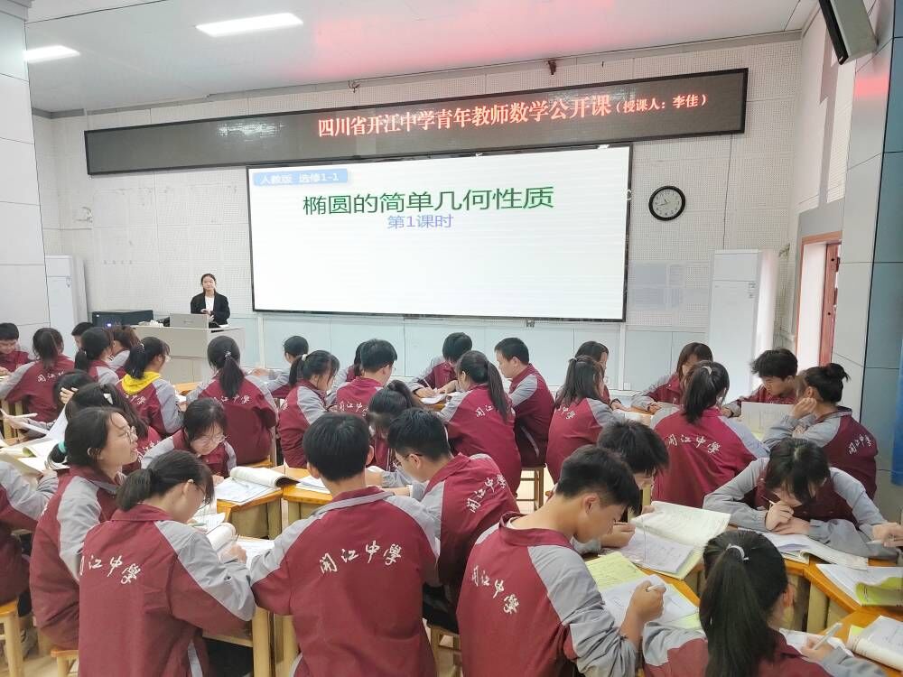 调研组来到开江中学调研交流学习,受到开江中学党委书记符纯兵、董事长崔军等领导和老师们的热情接待。调研组观摩了开江中学优秀青年教师李佳老师的公开课——《椭圆的简单几何性质(第一课时)》。李佳老师不仅是开江中学优秀的青年教师,也是太阳成集团tyc122cc2020届毕业的优秀毕业生代表。课后,开江中学备课组和太阳成集团tyc122cc的调研组就公开课内容进行了热烈地讨论,唐海军博士从数学语言、教学过程、教学结构三个方面针对本次课堂教学提出了改进建议。