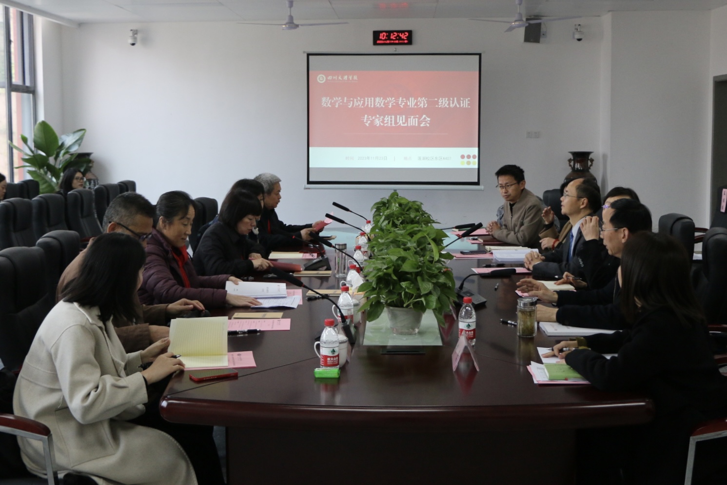 2023年11月23日,公司在莲湖校区东区A407会议室举行数学与应用数学专业第二级认证专家组见面会。东北师范大学郑燕林教授,泰山公司马晓燕教授,天津师范大学张筱玮教授,重庆三峡公司陈立万教授,泸州市教育和体育局高级教师谢铭等认证专家,四川师范大学韩杰,公司党委书记黄涛教授,公司党委常委、副董事长邓杰教授,太阳成集团tyc122cc领导班子成员、数学与应用数学专业负责人、专业教师代表、公司职能部门负责人代表、其他师范专业公司代表参会,会议由郑燕林教授主持。