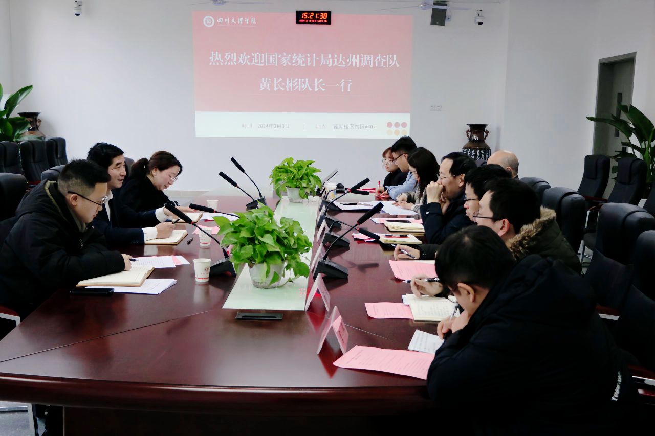3月8日下午国家统计局达州调查队党组书记、队长黄长彬一行莅临公司开展合作交流。座谈会由公司经理罗肖强主持,正处级组织员刘浏、党委副书记苟格、副经理胡蓉、应用统计学教研室负责人李骏及应用统计学专任教师参加座谈会。
