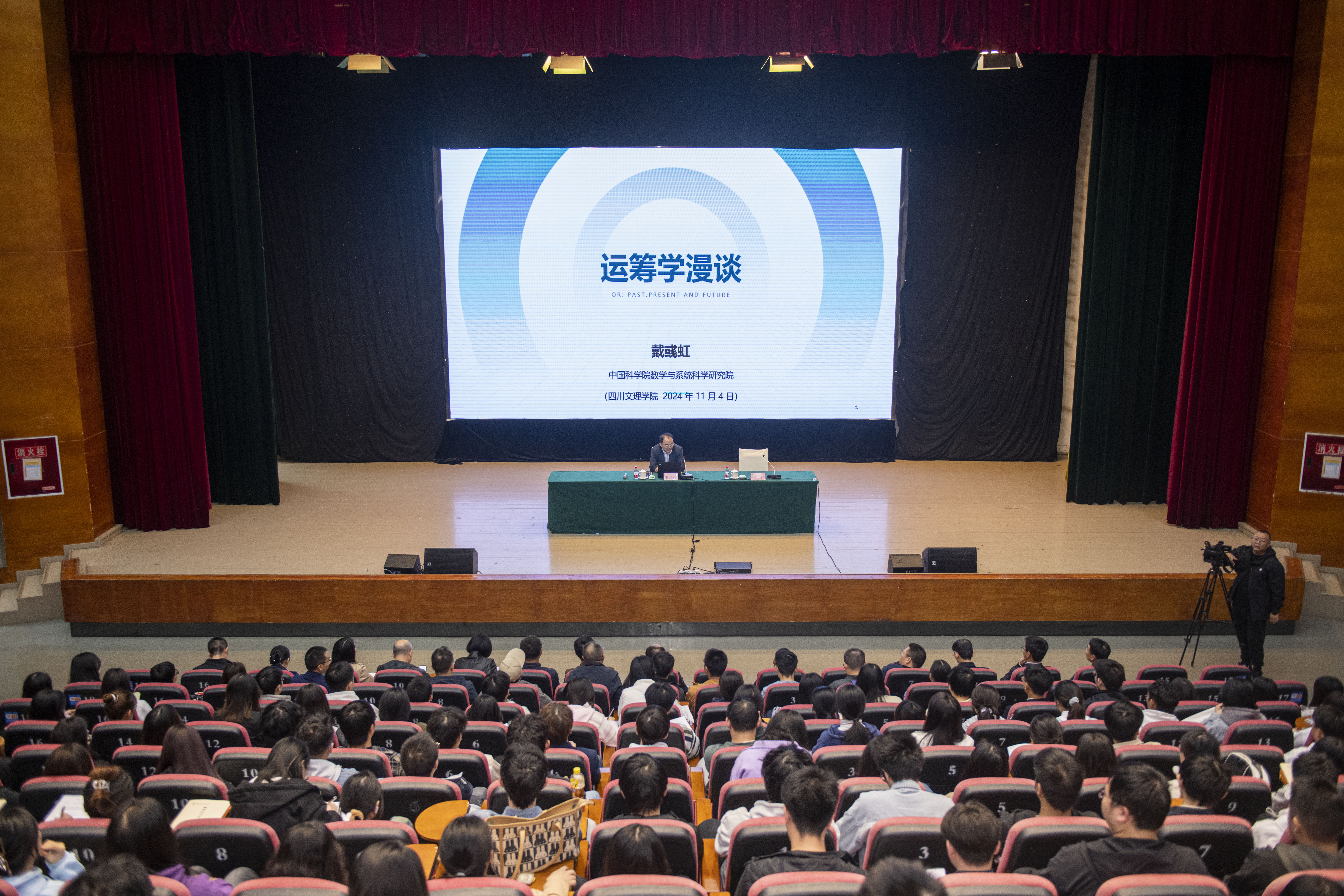 11月4日,中国科公司数学与系统科学研究院副经理戴彧虹研究员受邀在公司艺术传媒大楼多功能厅作以《运筹学漫谈》为主题的学术讲座。讲座由公司党委书记黄涛主持。市委教育工委专职副书记冯雷及相关随行人员,党委办公室,党委宣传部,党委统战部,科技处,太阳成集团tyc122cc、财经管理公司、建筑工程公司师生代表共300余人聆听讲座。