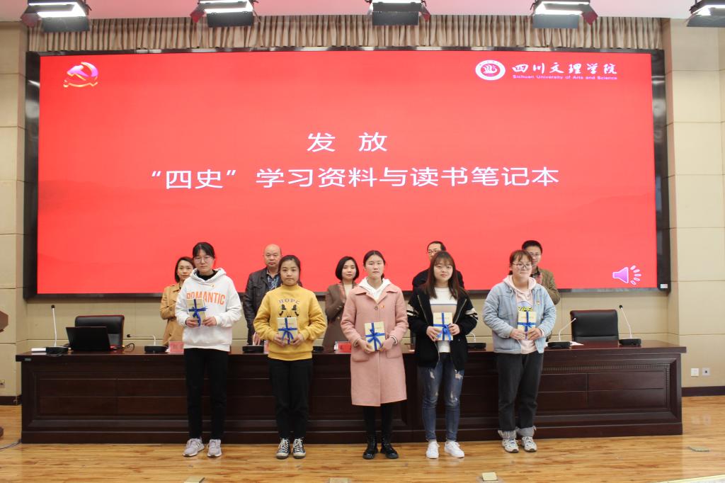 大会还向师生党员代表、员工党员代表发放了“四史”学习资料和读书笔记,希望师生们传承红色基因、永葆政治本色、勇于担当作为。