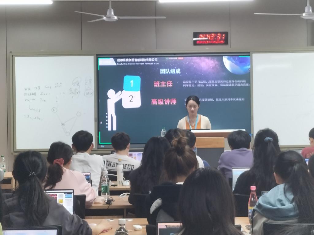 为深入贯彻落实《“十四五”教育发展规划》和《国务院办公厅关于深化产教融合的若干意见》等文件精神,落实公司产教融合协同育人人才培养模式,加强应用统计学专业员工的专业技能,提升员工的专业学习兴趣,2024年10月28日至11月10日,公司在莲湖东区A406、408实训室,联合成都易腾创想智能科技有限公司,对本专业2022级员工开展为期14天的项目实训。