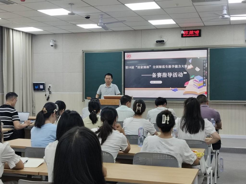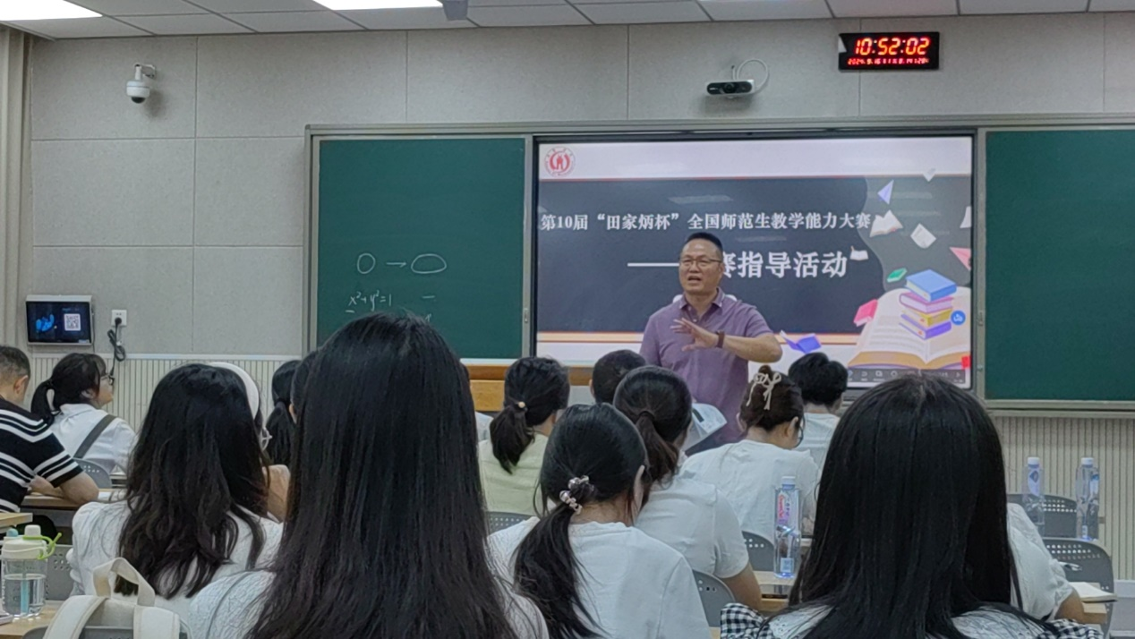 本次活动包括四个环节。第一环节,全体与会人员观看数学与应用数学专业2021级赵小满同学拟参加第10届“田家炳杯”全国师范生教学竞赛的说课和授课视频,并就参赛作品展开研讨。参会教师一致认为赵小满同学教学基本功较扎实、教姿教态较好、教学设计较合理、师生互动恰到好处。但也提出值得改进的地方,如说课语速太快、教学内容稍多,课堂的生成性欲灵动性相对缺乏等问题。最后,四川省牟必轩名师工作室领衔人牟必轩老师提出了很好的建议:他认为参赛员工及指导教师可以进一步紧扣课题,围绕情境创设和问题解决创新教学设计,明确主题,聚焦主线,不断打磨参赛作品,争取获得优异成绩。