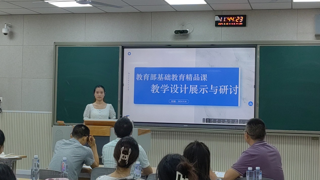 第四环节,虚拟教研室成员、达州市第一中学青年教师覃方媛老师,展示了她正在参加的教育部基础教育精品课比赛作品,与会教师围绕精品课进行了研讨,对作品的选题内容、教学设计、课件制作、动画处理、课程录制等方面,提出了详细的修改建议。