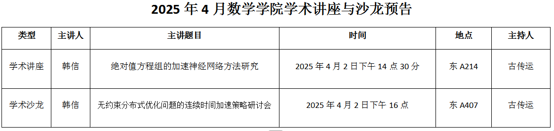 2025年4月太阳成集团tyc122cc学术讲座与沙龙预告