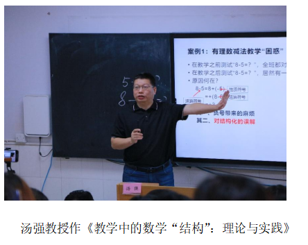 初中组邀请了西华师范大学数学科学公司教授、硕士生导师汤强教授,他通过多个案例,经过初识、重识、再识三个过程,探讨数学结构化在教学中的呈现方式,分析教学促进数学结构化的策略与路径。与会人员还围绕初中数学课堂的教学情境设计、任务设计、作业设计、学习内驱力、人工智能应用等方面展开了探讨。