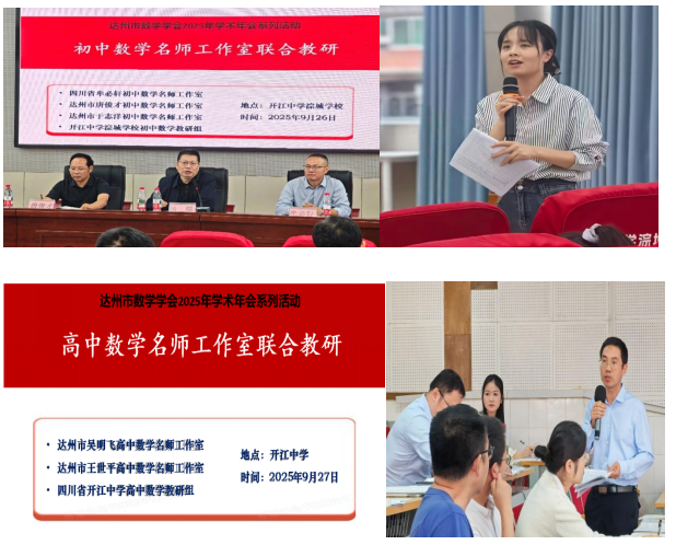 本次年会期间,四川省牟必轩初中数学名师工作室,达州市唐俊才、于志洋初中数学名师工作室,达州市王世平、吴明飞高中数学名师工作室分别在开江中学淙城公司和开江中学进行了初高中数学联合教研活动。