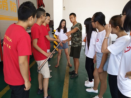 下午,在大队军营,消防志愿者先是参加了以军姿和停止间转法为主的单个军人队列动作。接下来又由消防中队的伍士官带领全体消防志愿者体验了水带连接操,最后由冷士官带领我们学习了几套简单的结绳方法,如床单结绳法、蝴蝶结绳法等。晚上由李士官带领我们观看了火灾警示教育片,大家切实感受到了消防官兵的舍己为人和不怕牺牲的精神,以消防官兵为我们的骄傲。