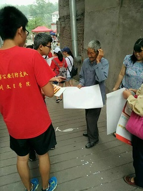 6月30日上午8:30分从消防大队出发,在消防官兵的带领下,分别到达州大竹石河、庙坝两个乡镇,参观当地的微型消防站;查看当地的消防设施;深入到居民中,查看居民住房中存在的安全隐患,并给出整改方案;最后向当地居民分发传单,宣传消防安全常识。下午,大竹消防官兵们向我们展示了消防服装,向我们介绍其使用场合和使用方法,并组织我队员进行了实际操作体验。