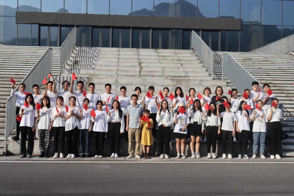 升旗仪式开始,国旗队迈着整齐的步伐入场,鲜艳的五星红旗在激昂的歌声中冉冉升起。国旗下的数院学子肃穆而立,手中的红旗随风舞动,爱国之心在胸膛炽烈发烫,他们英姿飒爽的身影定格在照片里。