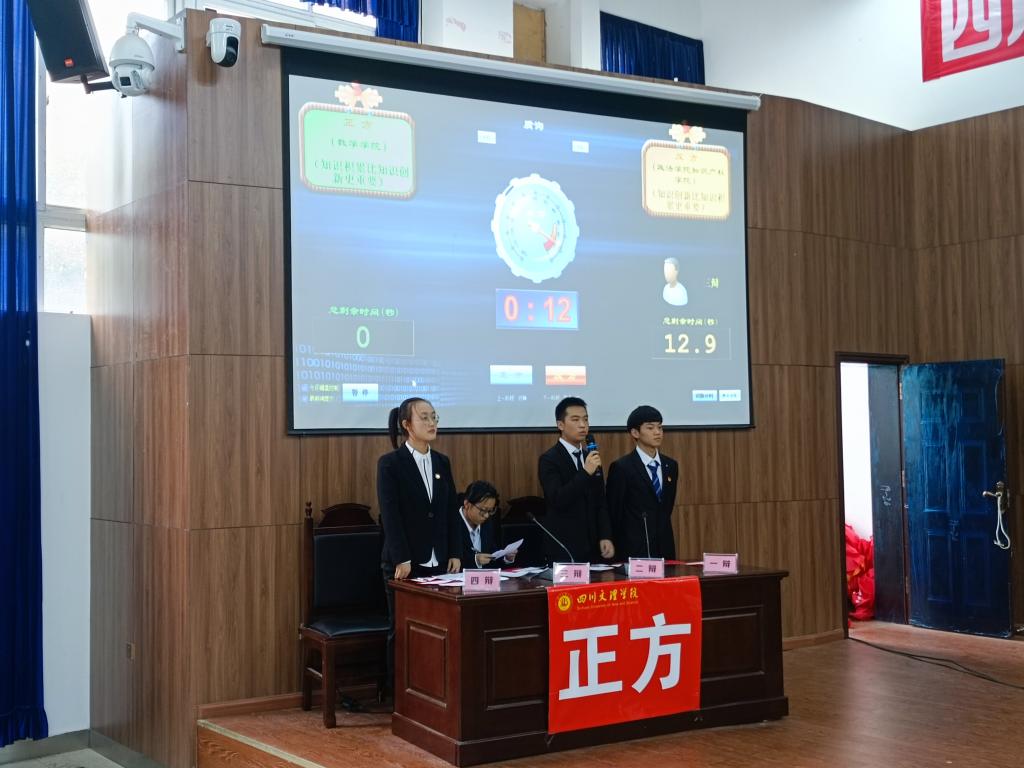 本次比赛围绕“青年成才的关键是自身能力还是外部机遇”、“人为自己活着快乐还是为他人活着快乐”、“知识积累与知识创新哪一个更重要”、“知难行易与知易行难” 四个辩题展开。在第三组比赛中,公司辩手作为正方,与政法公司和知识产权公司辩手围绕着“知识积累与知识创新哪一个更重要”展开辩论。正反双方以高度概括性的语言陈述各方观点。在接下来的攻辩环节中,双方二、三辩妙语连珠,据理力争。自由辩论环节的激烈辩论与正反方四辩的总结陈词更是将全场气氛引入高潮。赛后,评委对各位辩手的优秀表现给予了充分肯定,同时也指出辩手们仍存在的不足和暴露出的新问题,提出相关解决措施和建议。在整个四组比赛的过程中,辩手思维敏捷,论证严密,凭借犀利的语言、高超的答辩能力为观众奉上了一场场激烈的精彩比赛。