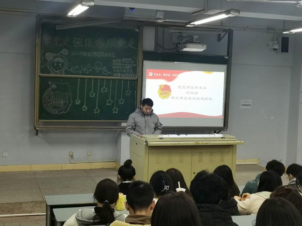 生活会上,团支书杜佳佳向大家汇报本团支部党史学习情况,鼓励团支部成员积极学习党史。团支部委员熊海作2021年度工作总结,总结2021年度本团支部工作开展情况,指出该年度工作开展的优点与不足。团支部宣传委员刘俊彦在熊海的工作总结汇报的基础上,作出工作反思与改进措施,确保在以后的工作中,团支部工作开展更加顺利。