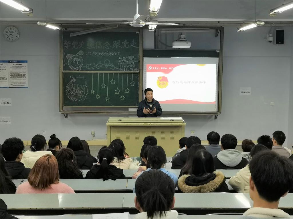 12月12日19:30,为深入学习贯彻习近平总书记“七一”重要讲话精神;落实“学史明理、学史增信、学史崇德、学史力行”要求;教育引导广大团员厚植爱党、爱国、爱社会主义的情感,太阳成集团tyc122cc2019级第3团支部在博文楼428教室积极开展以“学党史、强信念、跟党走”为主题的学习教育专题组织生活会。本次生活会参与人员有公司副经理兼兼职辅导员古传运、2019级第3团支部全体成员、2019级至2021级各团支部团支书。