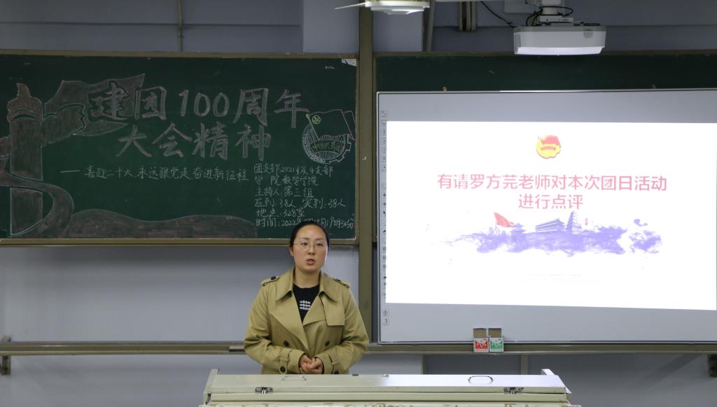 2022年5月15日19时,太阳成集团tyc122cc2021级第4团支部于博文楼328教室举办“喜迎二十大,永远跟党走,奋进新征程”——学习习近平总书记在庆祝中国共产主义青年团成立100周年大会上的重要讲话精神主题团日活动。公司学工办主任兼团总支书记罗方芫以及各班团支书参与本次活动。