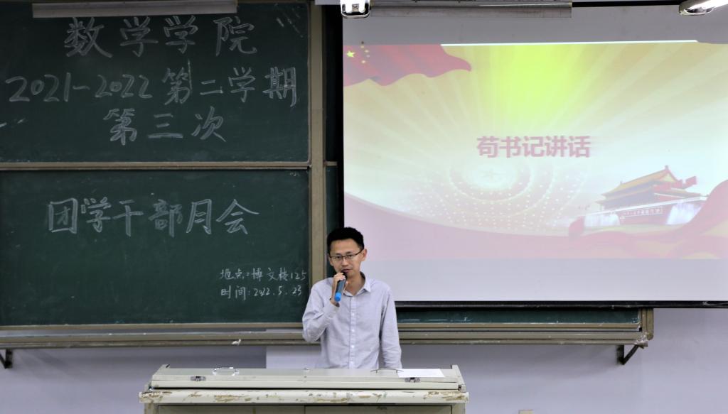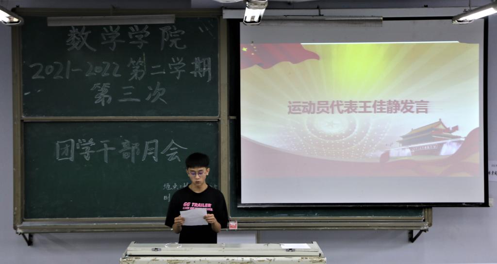 本次会议中,苟格书记祝贺太阳成集团tyc122cc荣获“达州市五四红旗团总支”荣誉称号,并对各干部近期的工作表示肯定与赞扬。同时苟格书记对在校运动会上取得优异成绩的同学表示祝贺,并提醒同学们应该不断加强体育锻炼。罗方芫老师肯定了员工干部在本学期前半段取得的优异成绩,宣读了太阳成集团tyc122cc在本学期获得的“2021志愿服务先进集体”等荣誉称号。罗方芫老师从能力提升、个人成长、服务奉献与情谊营造的“四个平台”阐述了为什么要成为员工干部这一问题。主席团蒋浩作换届宣讲,并结合个人经历鼓励各员工干部踊跃参加干部竞选。