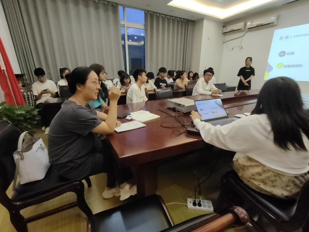 预答辩严格按照校团委下发的答辩要求来进行,答辩代表在限时3分钟之内,准确陈述项目的背景、意义、项目的实施和成果等方面的内容。答辩代表准备充分、答辩陈述清楚,展现了同学们对暑期三下乡工作的热爱。5支队伍答辩结束后,罗方芫老师进行了统一指导,提出3点建议:一是要注重答辩的礼仪礼貌,着装要规范整洁;二是要进一步提炼项目的亮点,要在规定的时间内把项目的开展和亮点展示出来;三是答辩代表要做到自信大方,声音洪亮,展现出数院学子积极向上的精神风貌。
