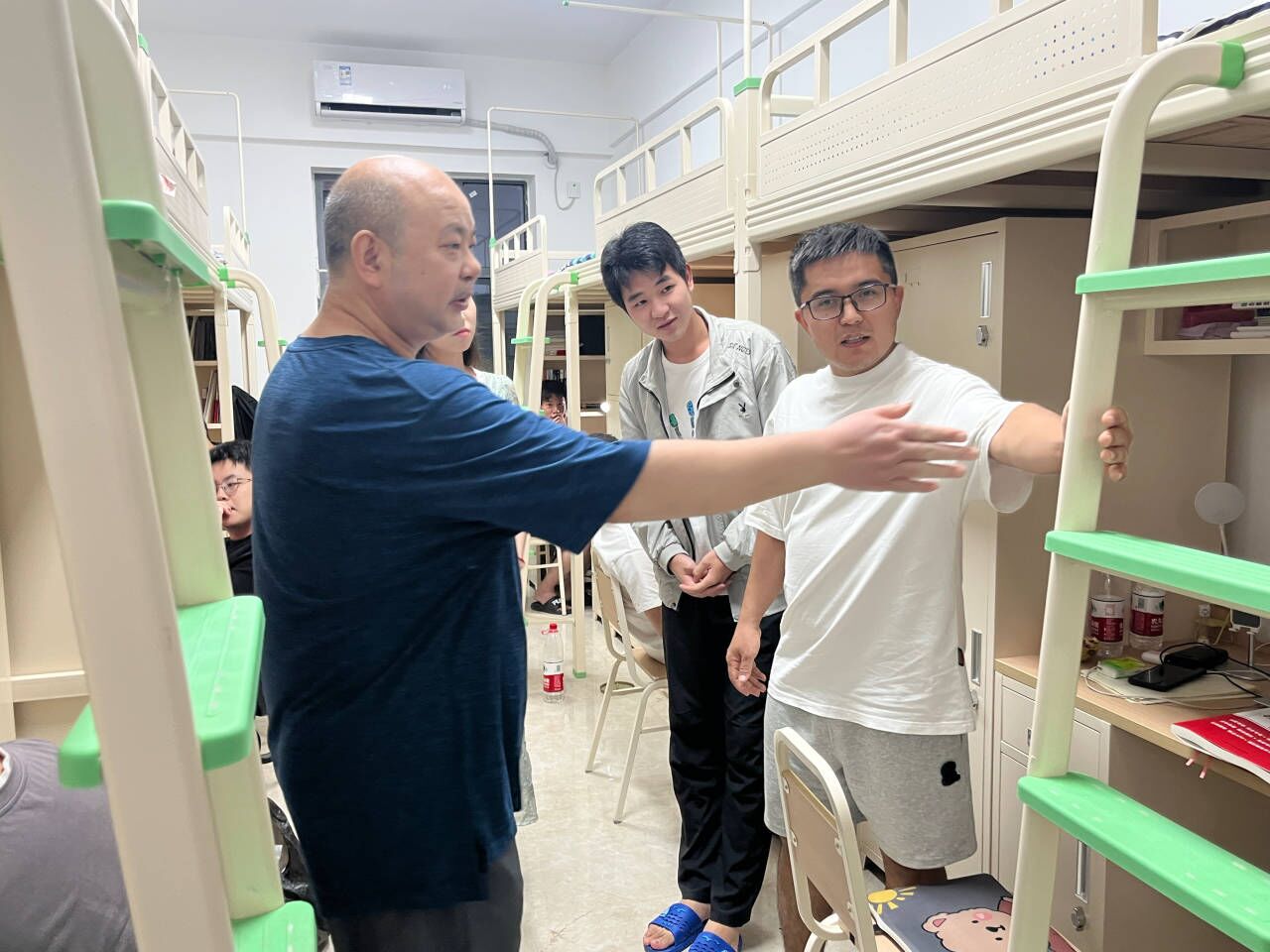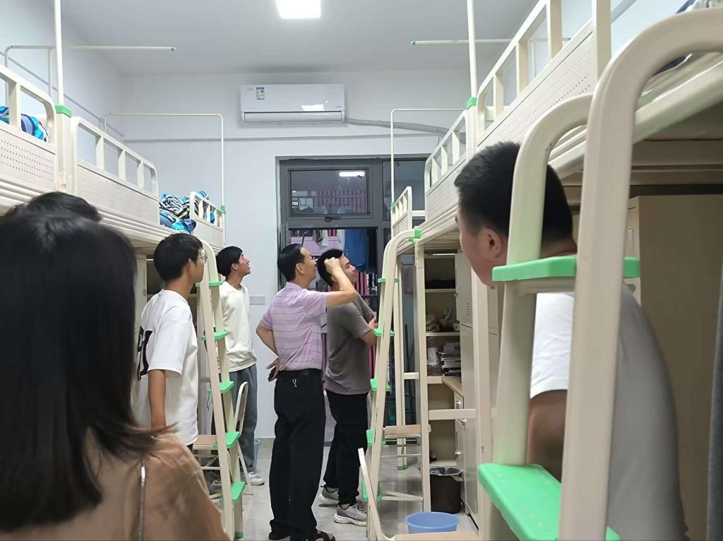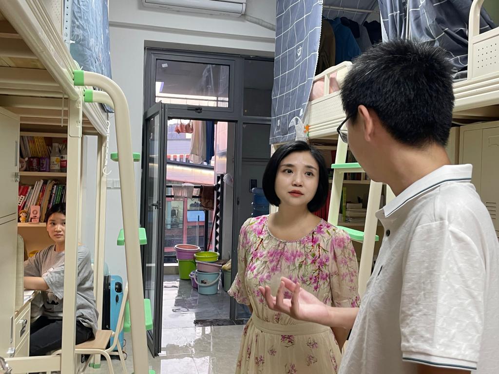 2023年9月2日,公司员工全部搬迁至东区,为更好的了解公司员工生活住宿及其他相关情况,9月3日19:00,党委书记王晶,经理罗肖强,正处级组织员刘浏,党委副书记苟格,副经理胡蓉,专职辅导员唐雪溶、西尔艾力.努尔买买提、、焦国松、夏涌繁等老师带领员工会干部成员对公司新迁宿舍进行访查。