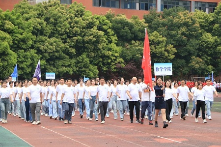 随着音乐响起,国旗仪仗队、校旗,彩旗方队、机关代表队和各二级公司方队依次进场,公司师生代表方队迈着整齐的步伐,昂首阔步,以“天下几何,唯我数学”的精神,敢于有梦,勇于追梦,勤于圆梦。近年来,公司秉持先进育人理念,坚持“四位一体”办学思路,员工在各类竞赛中屡获国家级、省级大奖。运动会上,数院健儿以数轴原点为圆心,画出公司的雄心壮志。