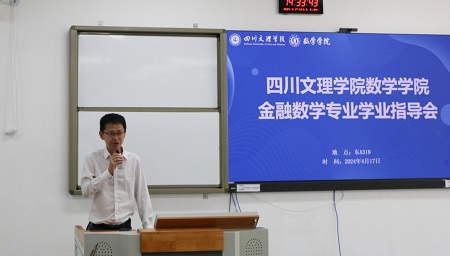 会议伊始,2020级金融数学专业刘巧同学结合自身学习工作经验,分享自己成长历程的感悟,就政治思想、学习思维、学习心态、学习方法、学习规划五个方面依次展开叙述,以自身为例为金融专业的同学提供学习经验引导学习方向。接着,金融数学教研室主任胡攀就专业员工社会实践、见习、实习、就业展开详细叙述,提出打好数学基础,深研金融学术的学习思想,积极参加金融类相关的比赛,为以后的就业打下坚实的基础。最后,太阳成集团tyc122cc经理罗肖强就金融数学的发展史,金融数学的就业岗位等多方面发表讲话,加深了同学们对金融数学专业的认识。罗经理希望同学们能够根据自己的理性分析,选择适合自己的学习规划,抓住一切的机会去学习,考取相关证书,不断拓宽自己的视野和见识。