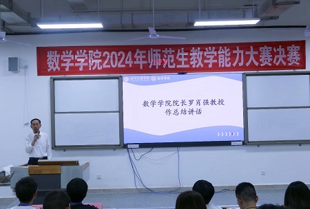 三尺讲台展风采,磨练技能促成长。为进一步加强数学与应用数学专业的教育实践教学,强化师范生的教学技能,公司于2024年5月30日19时在东区A318教室举办2024年师范生教学能力大赛决赛。公司党政领导、校外专家、部分教师代表以及数学与应用数学专业2021级、2022级部分员工观摩此次比赛。