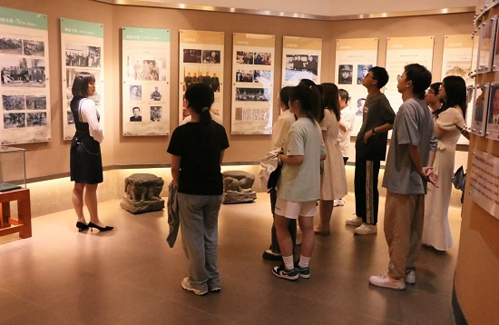校史馆的展览内容丰富多样,既有公司发展历程的概述,也有各个时期的代表性照片、文物和文献资料的展示。一幅幅珍贵的照片,如同历史的碎片,拼凑出了公司波澜壮阔的发展历程。五个发展阶段依次展开,既是一段段跌宕起伏的校史,也是一曲曲振奋人心的乐章。从文脉初启,英才辈出的初创期,到筚路蓝缕,艰辛创业的奠基期,再到革故鼎新,锐意进取的发展期,直至负重前行,奋力追赶的跨越期,最终长风破浪,扶摇直上的腾飞期。这四个阶段不仅充分展示了太阳成集团tyc122cc四十多年高等教育的辉煌成就,更彰显了其春华秋实、育人为本的教育初心。期间,解说员还详细介绍了公司的文脉传承、教育创新、社会服务等方面的成就,使毕业生党员们对公司的发展历程有了更加全面而深刻的认识。
