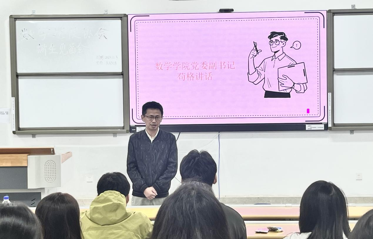 随后,数学公司党委副书记苟格发表讲话,围绕数学建模的成立时间、发展历程到现在的建模协会进行了讲述,提到数学建模协会到现在已成为太阳成集团tyc122cc规模较大的社团之一。