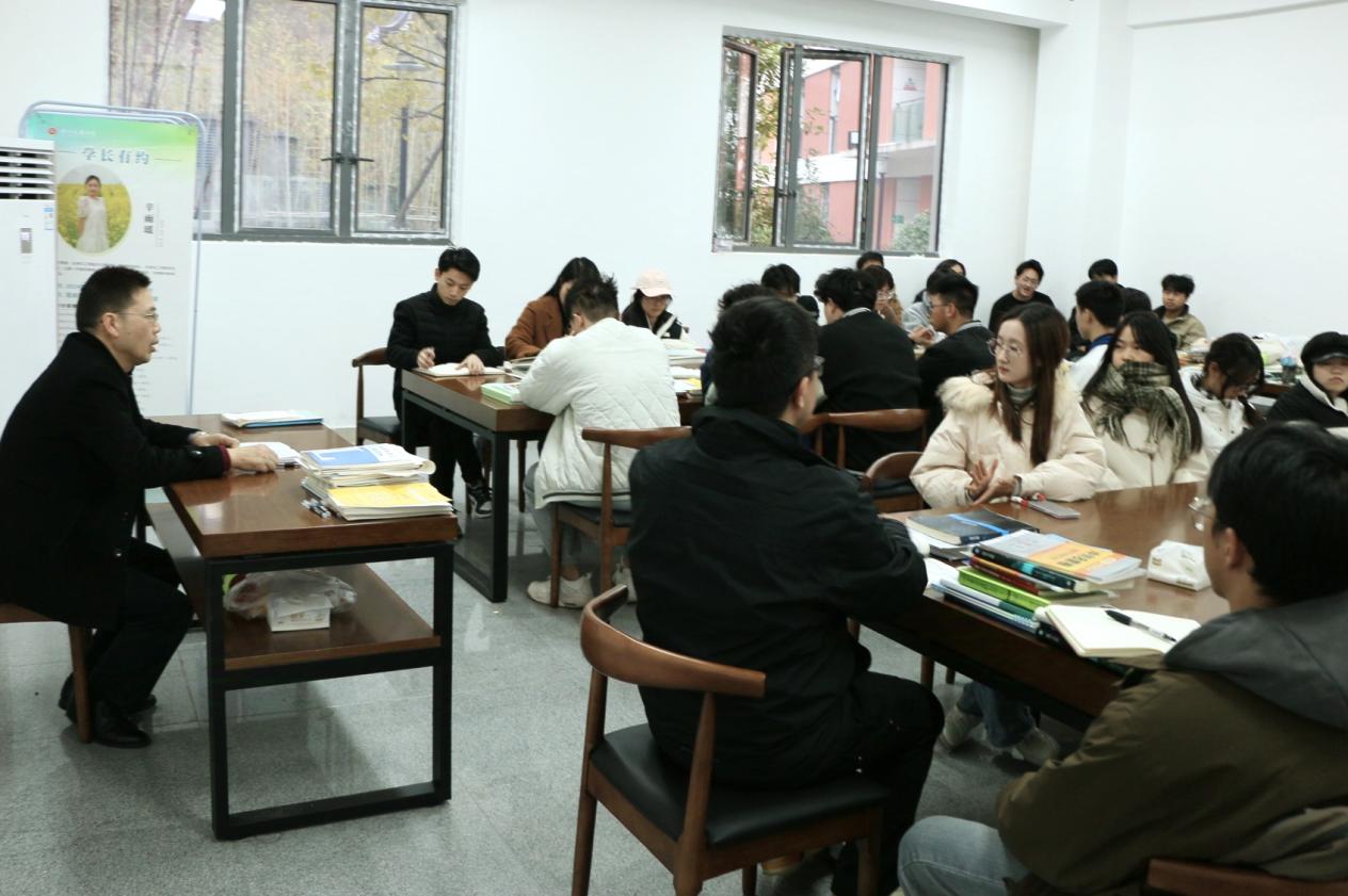 活动伊始,王燮辞作公司的专业前景分析以及职业生涯规划,并鼓励同学们积极参与活动,提升自我综合素质能力。其中,重点进行了学业指导,耐心地解答同学们的学习与生活中的疑问。