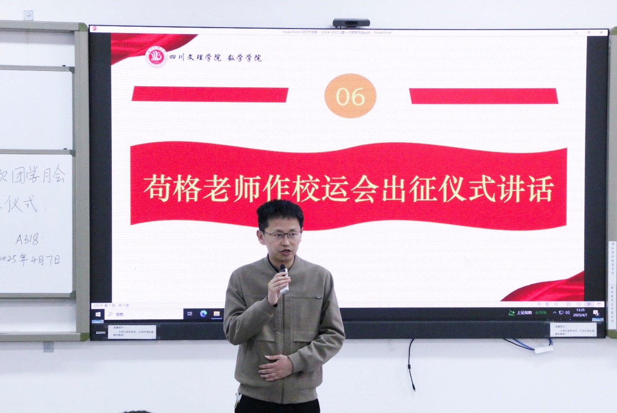 最后,苟格副书记对本次运动会做动员,提出各班班委在运动会期间要配合学习部进行考勤,部门和班级明确自己的任务,志愿者人员要做好服务工作。苟格副书记提倡同学们应该全面发展,希望同学们在遇到学习和工作发生冲突的情况下能够合理安排时间。此外,希望运动健儿们能在保证自己的安全情况下,超越自我,取得好成绩。