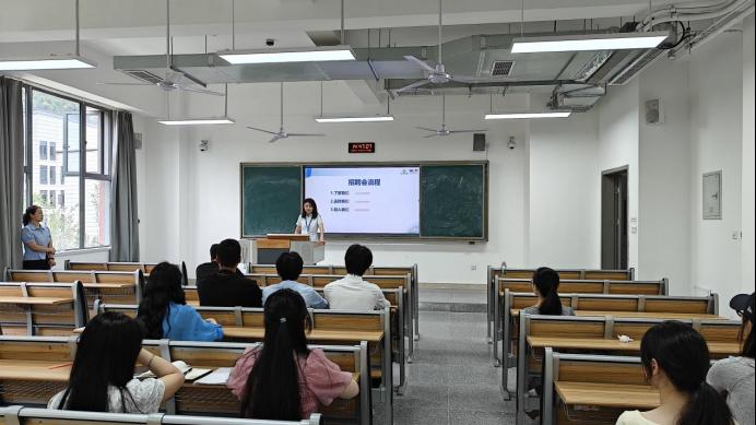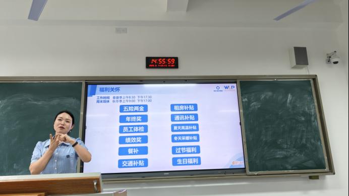 招聘面试会伊始,张莹方以视频为载体,全方位向毕业生们展示企业的发展历程、战略规划及运营概况,并对公司规章制度、岗位详情、福利待遇及职业前景等方面作出细致介绍。杨铮强调,公司始终将人才培养与发展视为核心理念,致力于为员工打造宽广的职业晋升通道,努力为员工构建完善的福利保障体系。招聘过程中,现场气氛热烈,毕业生们手持精心准备的简历,全神贯注聆听公司负责人讲解,并不时与公司负责人展开互动。